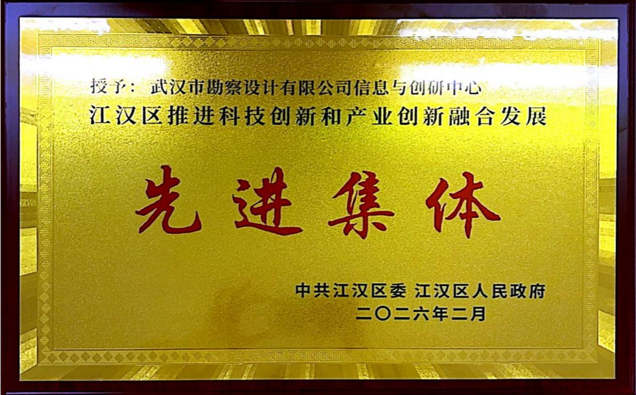 近日,中共江漢區委、江漢區人民政府印發《關于表彰江漢區推進科技創新和產業創新融合發展先進集體和先進個人的決定》,武漢市勘察設計有限公司信息與創研中心憑借在巖土工程數字化領域的突出創新成果與產業化實踐,榮獲“江漢區推進科技創新和產業創新融合發展先進集體”稱號。這一榮譽是對公司及團隊多年來深耕行業、推動傳統巖土與前沿技術深度融合的高度肯定。